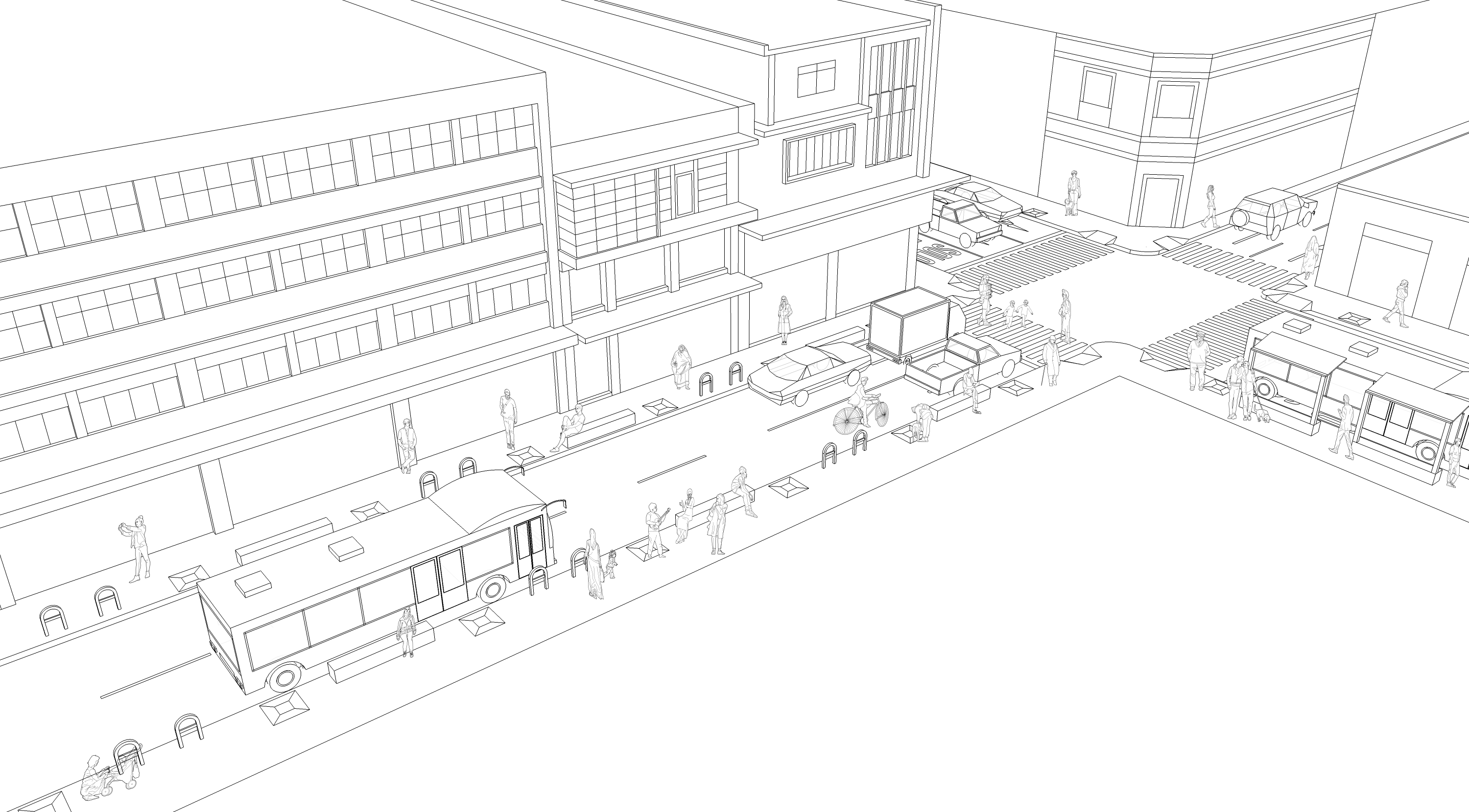 Working alongside civic organizations and architecture students, this project made the case to city government that sidewalk widening was feasible without disrupting vehicular capacity, reframing the street’s cross-section as a question of political will rather than engineering constraint.