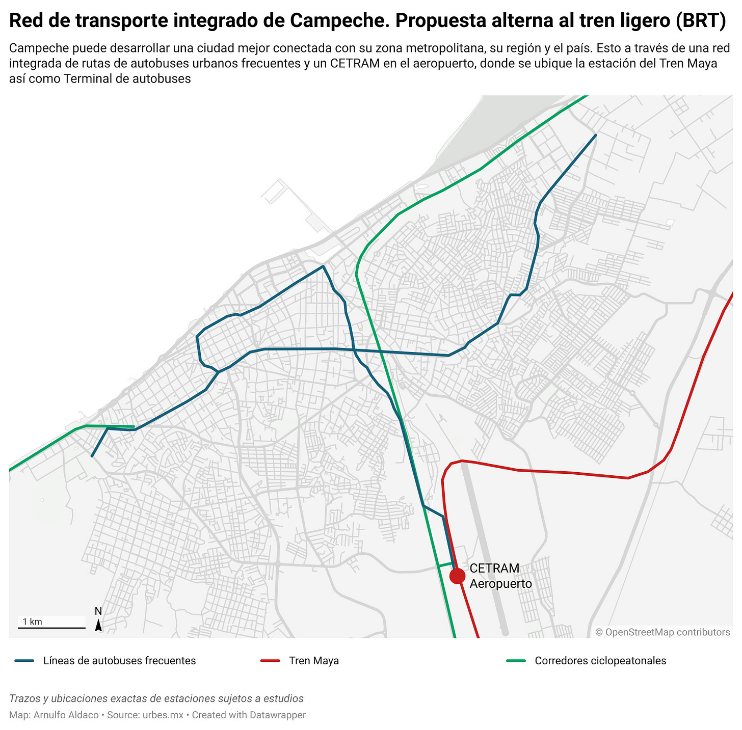 This would guarantee the intermodality and seamless connections we’ve been talking about. And given Campeche’s tropical climate, all transfers could be made within climate-controlled spaces, or even naturally comfortable ones, if the right architectural project is developed.